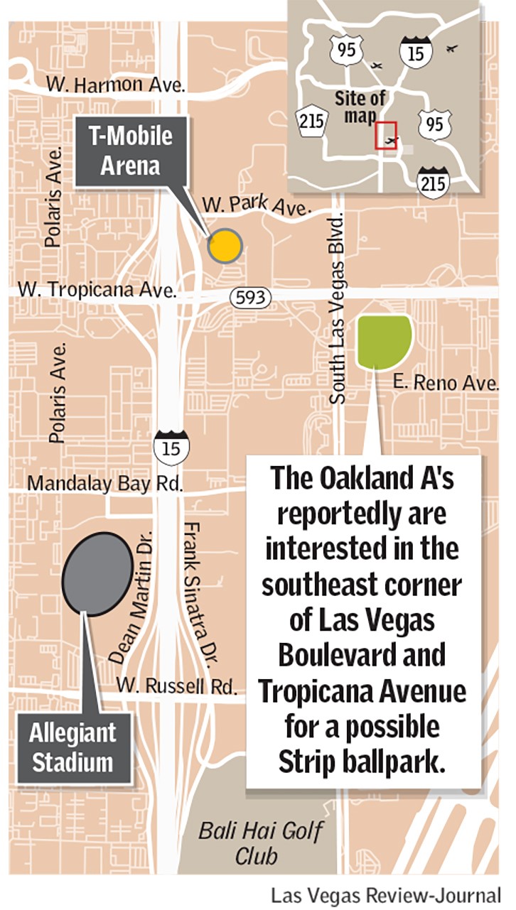 A’s President Dave Kaval told the Review-Journal last month that the team had put an offer on a site where it could look to build a $1 billion Major League ballpark. Kaval didn’t reveal the site at that time but noted the team was down to two or three sites in Las Vegas after whittling a list that once included over 20 sites.